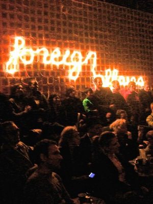 Small mosaic roundtables overflowed with wine, vodka, and Red Bull mixers. Black velvet fabric lined the walls and windows to spotlight the stage and a “Foreign Affairs” neon sign. Spectators found seating on the floor, against the walls, and on plush comfortable sofas to watch one of kind performances. Folk singer Tine Kinderman cooed medieval German songs of dark debauchery. The Shanghai Triad played authentic Chinese jazz songs from the 1940’s. Burlesque artists Legs Malone and Amber Ray tantalized viewers with their risqué dance numbers. French chanteuse Nicole Renaud enchanted the crowd floor loft on Canal Street into a louche with her ethereal soprano, and Isengart belted out 80’s disco hits mixed up with political ditties from the Weimar Republic era, arranged by music maverick Rami Ramirez. Singer-songwriter Todd Almond brought down the house with witty and elegant compositions about urban life. In between performance sets, the crowd mingled to the eclectic sounds of DJ Mondo Lucien.